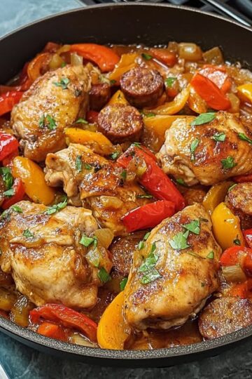 With Sweet Bell Peppers and Spicy Cherry Peppers If you’re searching for a comforting Italian-inspired dinner that’s full of bold flavors, this Rustic Sunday-Style Chicken & Sausage Cacciatore is exactly what you need. Tender chicken thighs, savory Italian sausage, sweet bell peppers, and spicy cherry peppers simmer together in a rich tomato and white wine […]