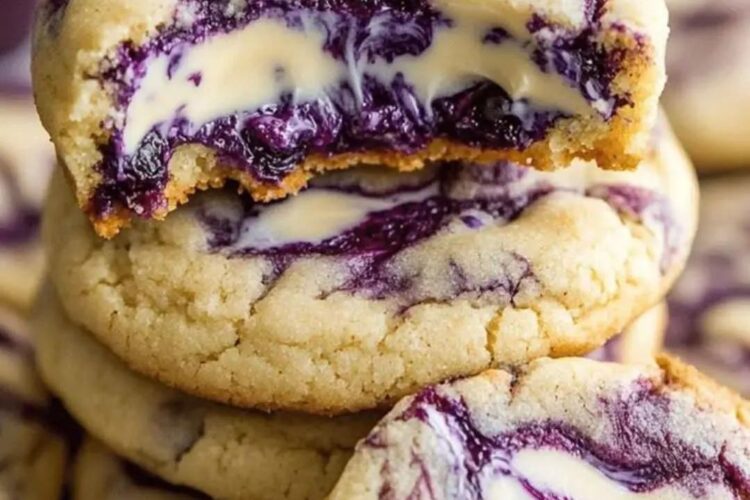 Soft, bakery-style cookies with a rich cheesecake flavor and sweet blueberry swirls. These cookies are tender in the center, slightly crisp on the edges, and packed with fruity flavor in every bite.