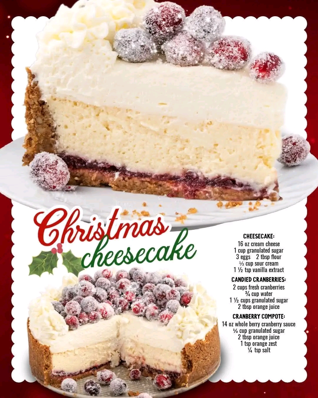 Christmas Cranberry Cheesecake Recipe: A Slice of Holiday Magic Celebrate the season with this show-stopping Christmas Cranberry Cheesecake—a creamy, dreamy dessert layered with festive flavors and crowned with sparkling candied cranberries. Whether you’re hosting a holiday dinner or cozying up with loved ones, this cheesecake brings joy to every bite. Ingredients Candied Fresh Cranberries (for […]