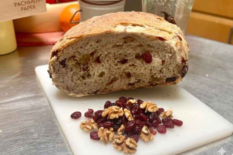 Cranberries and walnuts have long been paired together in baking for good reason. The tartness of dried cranberries balances the richness of bread dough, while walnuts add texture, depth, and a subtle bitterness that prevents the loaf from becoming overly sweet. When baked inside an artisan loaf, these inclusions become part of the bread’s structure rather than distractions.