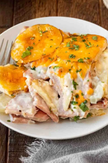 For this dish for Scalloped Potatoes with Ham from Food Network, which has smokey ham and hot, bubbling cheddar cheese, preheat the oven.