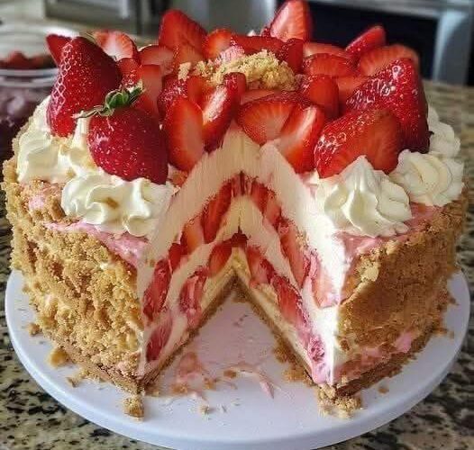 Whether served at a celebration or enjoyed quietly with family, this dessert brings together the best of cheesecake and fresh strawberries in a form that is light, creamy, and deeply satisfying.