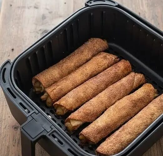 I have always believed that the kitchen is where creativity meets simplicity. One of the biggest challenges I often face is the craving for a luxurious dessert that resembles a classic apple pie, but without spending hours kneading and baking traditional dough. This is how my journey began in creating a recipe that combines the crunch of “taquitos” with the sweetness of a warm apple filling. The result was these rolls you see in the photo; golden, coated in cinnamon sugar, and prepared entirely in the air fryer. In this guide, I will share with you every detail of this recipe that has become the favorite dish in my home.